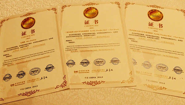 據(jù)了解,經(jīng)過世界酒店聯(lián)盟、世界酒店領袖中國會、世界酒店品牌研究中心、世界雜志社專家評審組評定,鳥巢度假村被評為“世界酒店·五洲鉆石獎”— 最佳精品特色酒店和十大最受歡迎酒店稱號,度假村董事長毛劍峰先生被評為中國創(chuàng)業(yè)功勛領袖。