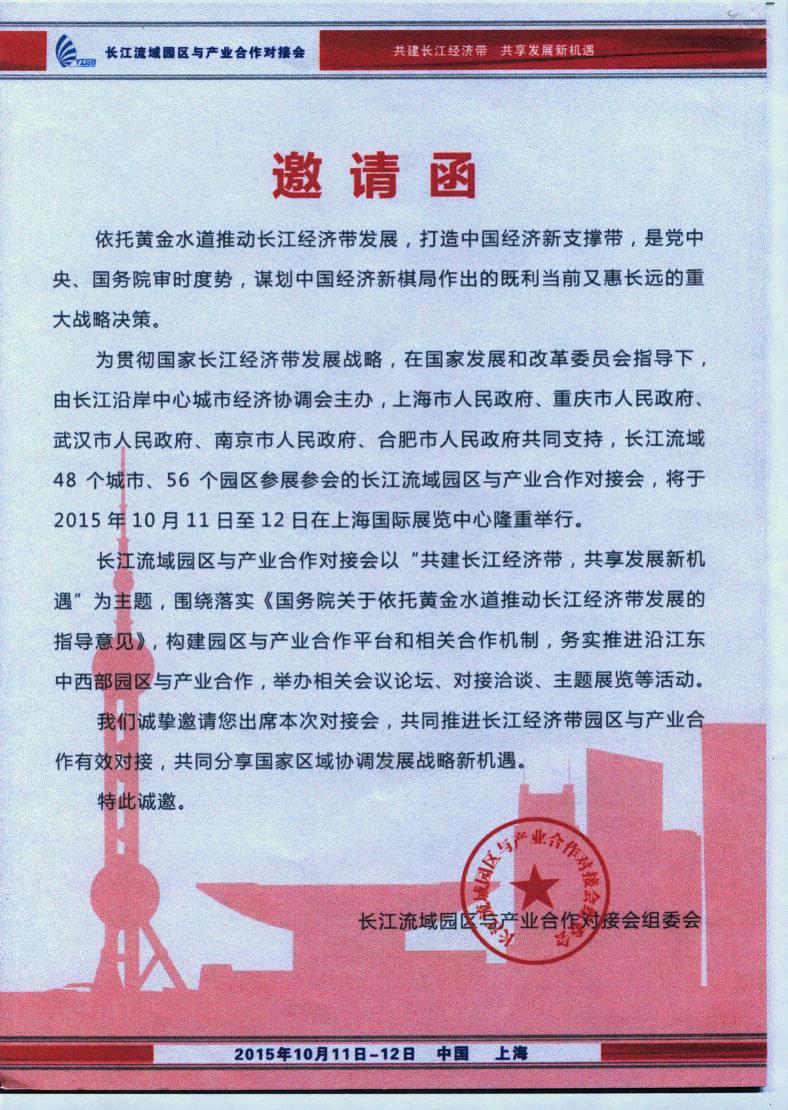 "長(zhǎng)江流域園區(qū)與產(chǎn)業(yè)合作對(duì)接會(huì)”活動(dòng)邀請(qǐng)函