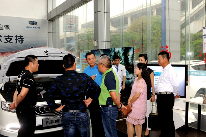 在海南開心汽車銷售服務有限公司,蔡會長一行聽取了總經理孫立的介紹,他說,海南開心汽車銷售服務有限公司是廣西開心投資集團于2013年2月在海南成立的吉利汽車旗艦經經銷企業(yè)。經過多年的經營和沉淀,現在已經成為吉利汽車在海南規(guī)模最大、實力最強、管理最先進的旗艦型汽車經銷商,成為吉利汽車在海南最堅實有力的合作伙伴。海南開心在海南省下轄一家4S旗艦店,七家二級網點,網絡布局海南全到各個主要市縣。?4S旗艦店占地面積4000余平方米,其中銷售展廳占地1500余平方米,售后雙層服務車間占地2500余平方米。海南開心擁有員工一百余名,全部經過吉利汽車培訓認證。經過四年的奮力拼搏,海南開心現在已經達到月均銷量200余臺,年銷量達到2000余臺,營業(yè)額2億余元。