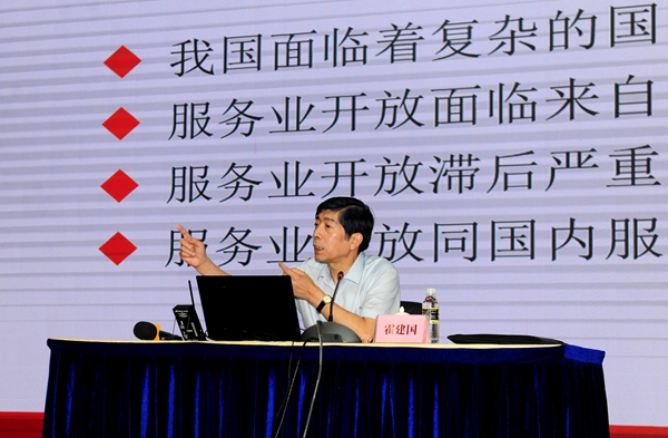 霍建國緊扣當(dāng)下海南服務(wù)業(yè)發(fā)展的熱點(diǎn)問題,圍繞服務(wù)業(yè)開放面臨新形勢新挑戰(zhàn)、海南自貿(mào)港建設(shè)重點(diǎn)是服務(wù)業(yè)開放、服務(wù)業(yè)開放的作用及意義、服務(wù)業(yè)開放的對策建議等方面,深刻闡述了海南在建設(shè)自貿(mào)區(qū)(港)背景下,服務(wù)業(yè)開放與服務(wù)貿(mào)易發(fā)展的大趨勢和企業(yè)發(fā)展新機(jī)遇。