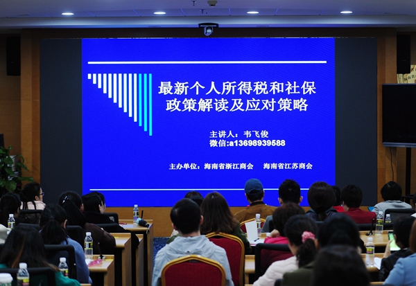 12月14日,海南省浙江商會及海南省江蘇商會聯(lián)合舉辦了“最新個人所得稅和社保政策解讀及應(yīng)對政策”講座,由商會稅務(wù)顧問韋飛俊主講。