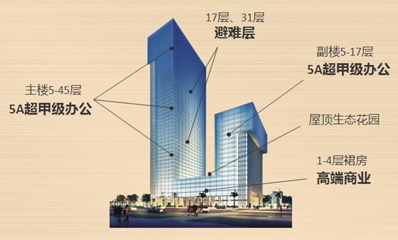業(yè)態(tài)上, 1-4層為高端商業(yè),5層以上為5A智能甲級辦公。