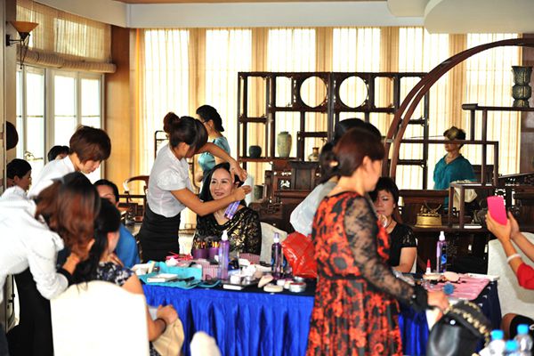 盛裝出席的女會員、嘉賓們,到達貴賓樓的第一項內容就是請專業化妝師為大家化美美的妝。俗話說,自古江南出美女,此話果然不虛。稍作裝扮的女會員、嘉賓們,用濃妝淡抹總相宜來形容再恰當不過了。妝后的大家,少了些倦容,多了一分溫婉、知性和嫵媚,實在是美不勝收,分外養眼。為了將這份美麗定格,商會特邀《海南浙商》雜志主編、海南著名攝影人王衛國,為每位女性拍照留影。