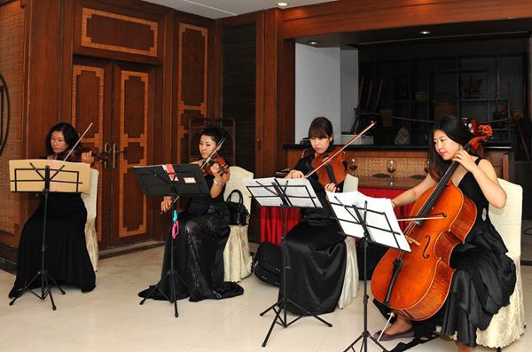 海口愛樂樂團四重奏弦樂隊為大家演奏了莫扎特的G小調弦樂曲、小施特勞斯的藍色多瑙河等有代表性的弦樂樂曲,并逐曲進行了講解,讓大家在高雅悠揚的樂曲聲中得到了升華和享受。