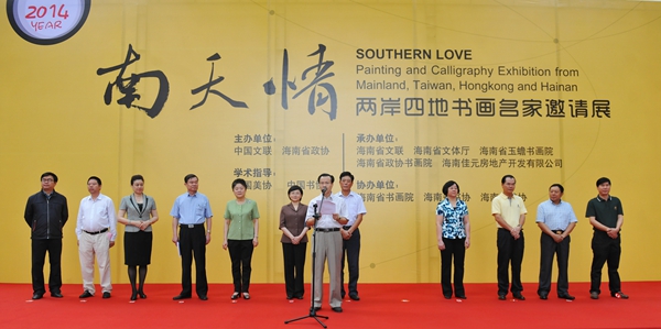 2014年5月7日,“南天情——兩岸四地書畫名家邀請展開幕式”在海南省博物館隆重舉行,海南省政協主席于迅、海南省政協副主席王應際和陳誠、中國文聯副主席楊承至、海南文化界、新聞界等眾多知名人士出席了本次活動,海南佳元地產總經理王水耀作為承辦方領導和特別嘉賓也參加了開幕儀式。
