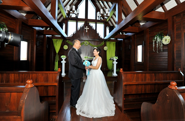 5月11日上午,海南三亞亞龍灣熱帶天堂森林旅游區風和日麗,彩球飄蕩,婚禮教堂廣場上洋溢著喜慶的氣氛。母親節為父母補拍婚紗照在亞龍灣熱帶天堂婚禮教堂廣場隆重舉行,來自全國各地的10對年過半百的父母,在子女和家人的陪同下,高興地參加了母親節為父母補拍婚紗照的公益活動。